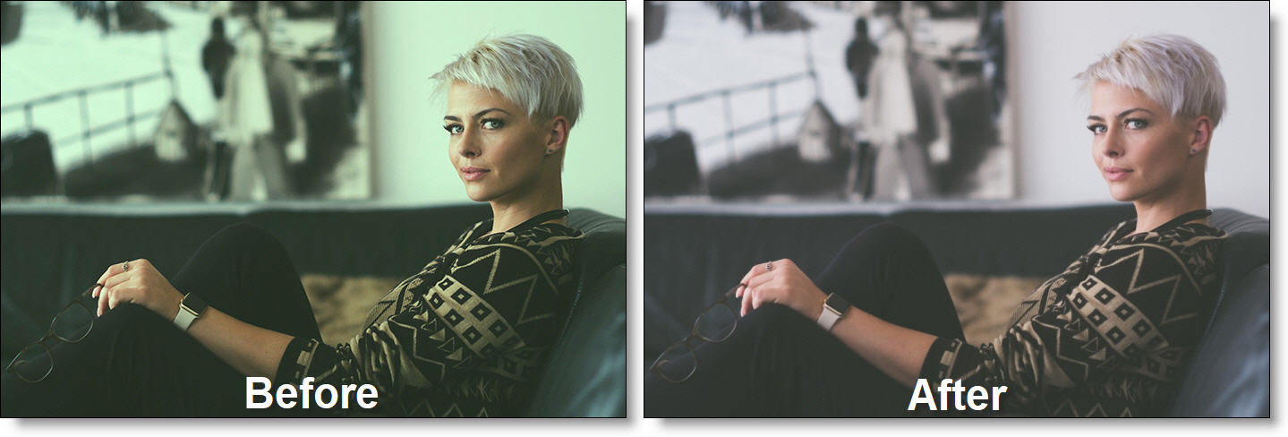 Removes the green cast caused by fluorescent bulbs.