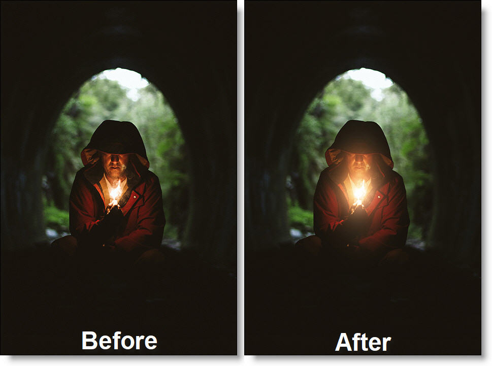 Light can be added to a scene where none existed before. A complete set of light source controls allow you to adjust the light just as you would at the time of shooting.