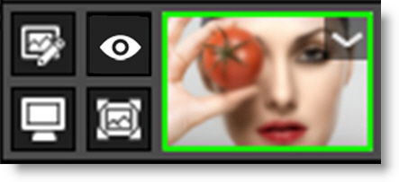 The View/Compare icon indicates which layer is shown in the Viewer and when enabled for multiple layers, the Viewer’s Side-by-Side, Vertical Split, Horizontal Split or A/B Comparison viewing modes become active. See the Compare section of the