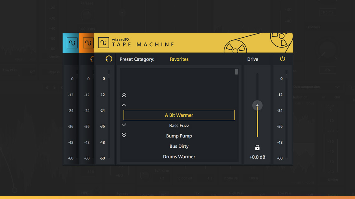 More character, more color, more pressure! wizardFX has it all! Use the Tape Machine for analog warmth or fat overdrive. The Bitcrusher offers authentic lo-fi sounds and the Tube Distortion ranges from light oversaturation or punchy distortion.